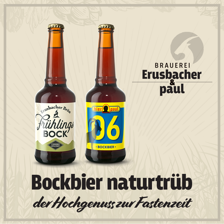 Auch in diesem Jahr bieten wir euch die traditionellen Frühlingsbockbiere von Erusbacher Bräu und bier paul an. Mit grosser Sorgfalt gebraut, erreichen diese Starkbiere zur Fastenzeit ihre optimale Reife.